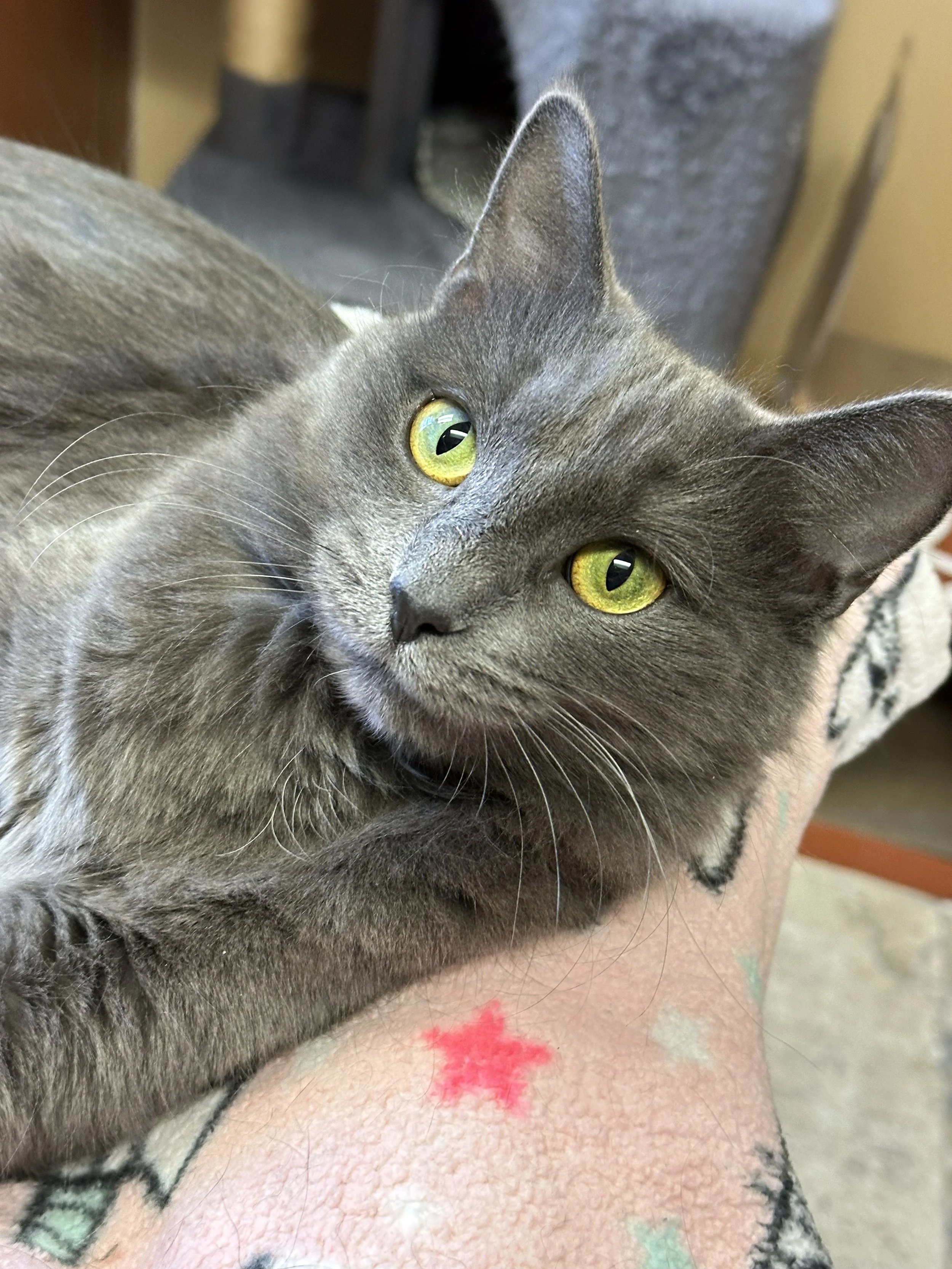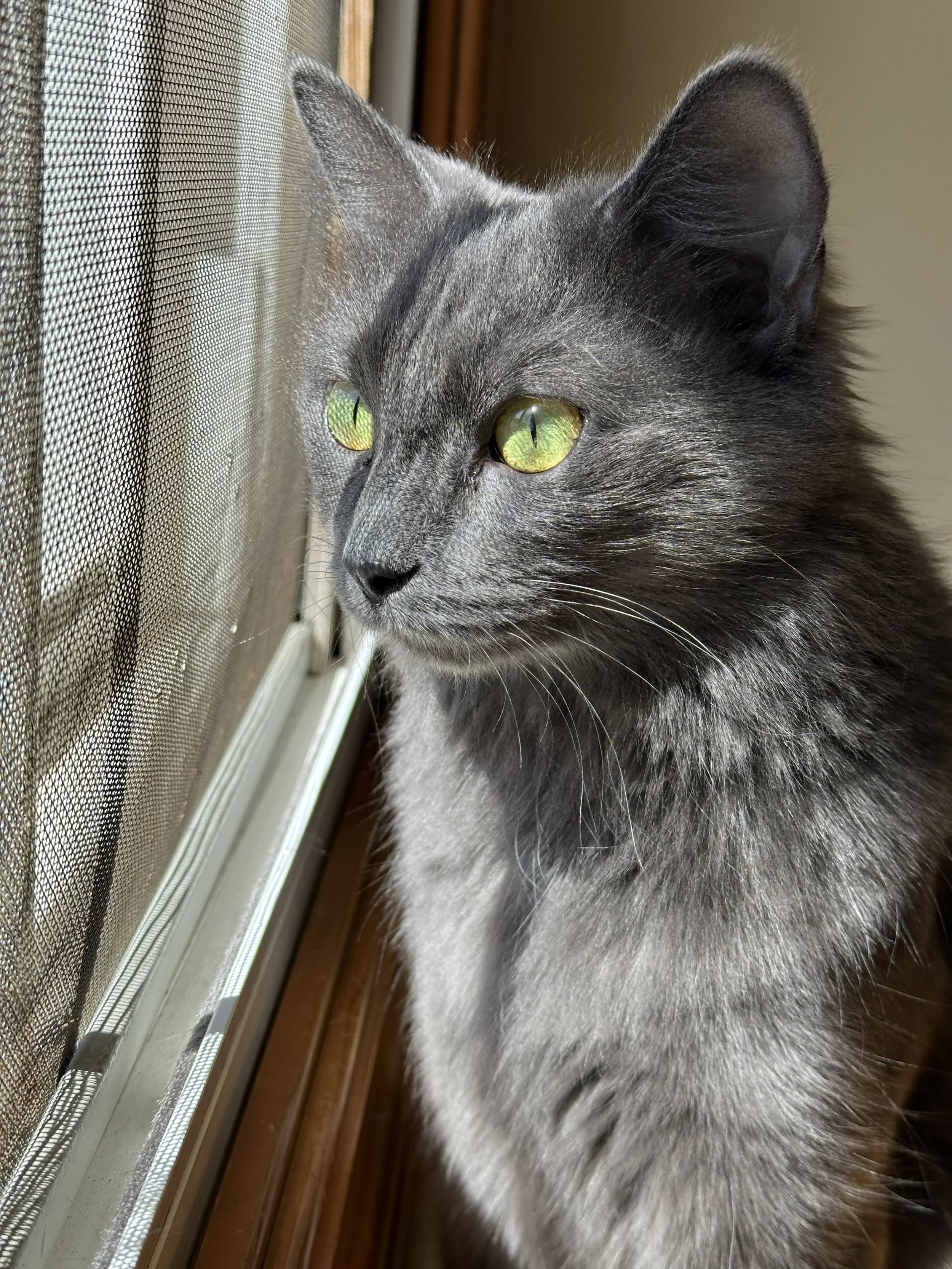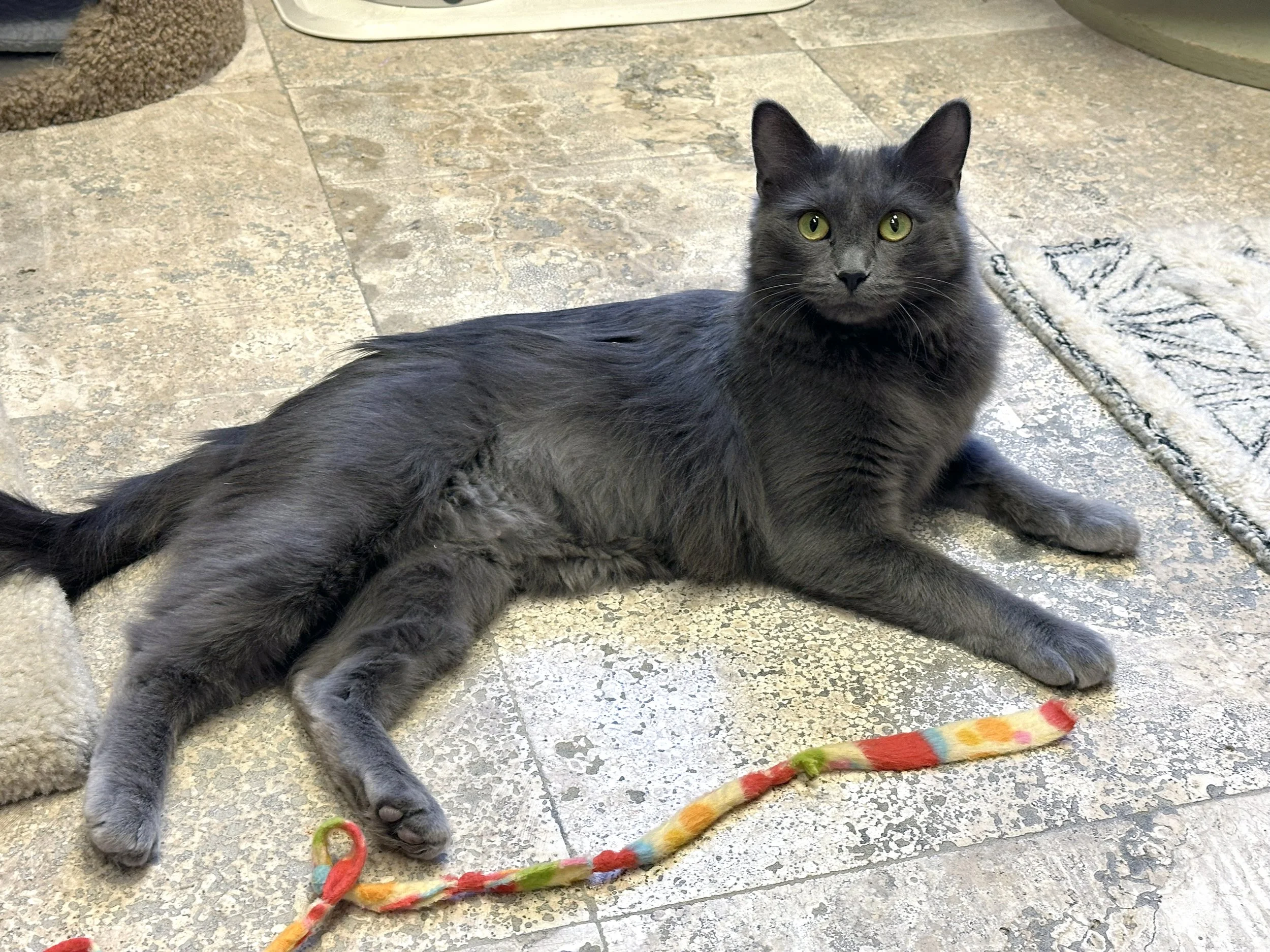 I love to chase wand toys, and am still figuring out those interactive electronic toys. My kittens and I all played and chased the wand toys together, but I do prefer time away from other cats. I'm looking for a home were I can be pampered and spoiled. I love to watch the birdies and sniff the fresh air, so a nice window watching spot would be purrfect!